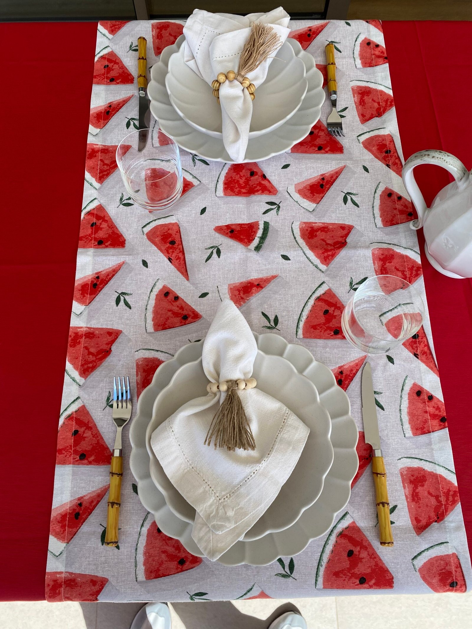Caminho para mesa da Coleção de Verão 2025 – Porto Rico, estampado com fatias de sumarentas melancias!