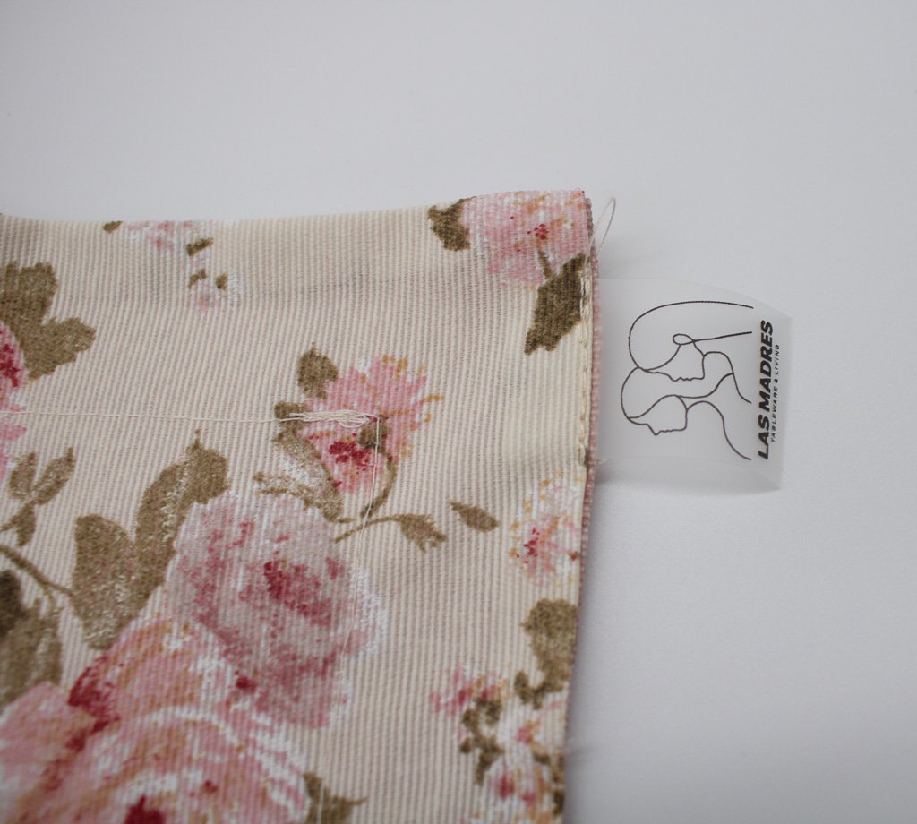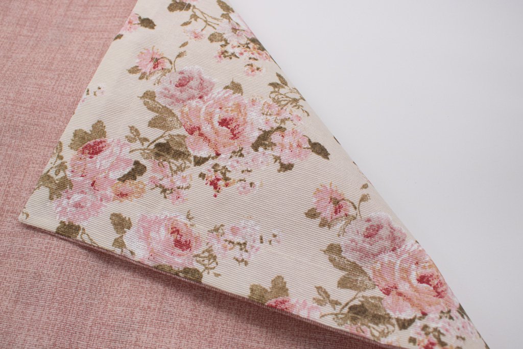 Individual retangular reversível da Coleção de Verão 2025 – Londres, com fundo branco e com estampado de flores em tons de rosa.